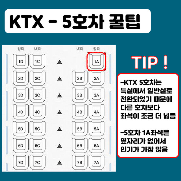 KTX 명당 좌석 추천, 5호차 빠른 승하차와 적당한 소음