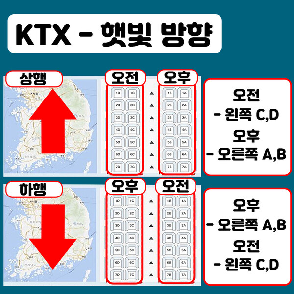 KTX 명당 좌석 추천, 햇빛 방향 고려한 좌석 선택