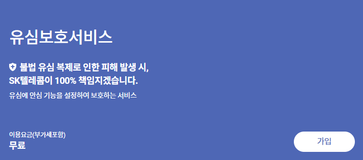 유심보호서비스는 휴대폰의 유심이 부정하게 교체되거나 다른 단말기에 장착될 때 이를 자동으로 감지하고 차단하는 서비스입니다. 스마트폰 분실, 해킹, 해외 로밍 중에도 내 번호와 개인정보를 안전하게 보호할 수 있습니다.